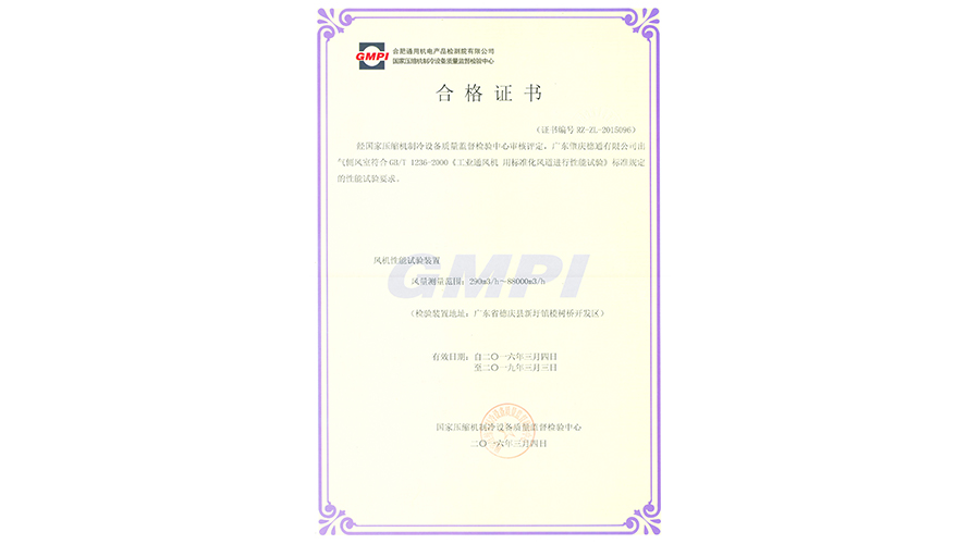 6. 廣東肇慶德通有限公司實驗室持續(xù)符合GB/T1236-2000《工業(yè)通風(fēng)機 用標(biāo)準(zhǔn)化風(fēng)道進行性能試驗》的標(biāo)準(zhǔn)規(guī)定的性能試驗要求,續(xù)頒合格證書!...