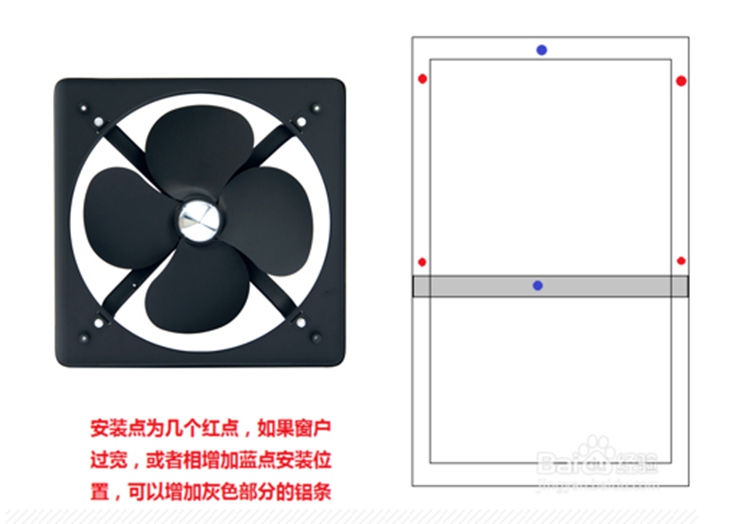 注意事項(xiàng):鐵絲一定要牢固,需定期檢查鐵絲的使用情況,如有破損,及時更換,并且最好使用帶百葉或者風(fēng)網(wǎng)的換氣扇產(chǎn)品。