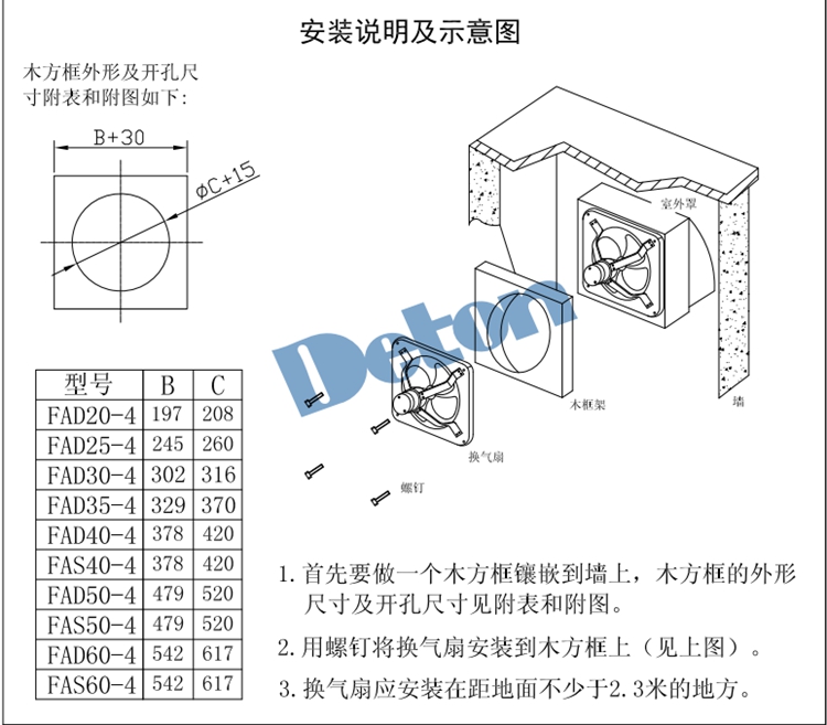 換氣扇用作房屋換氣應(yīng)安裝在距離地面不少于2.3米的地方。