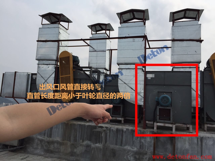 彎頭與出風(fēng)口無直管過度,導(dǎo)致風(fēng)機(jī)噪音大