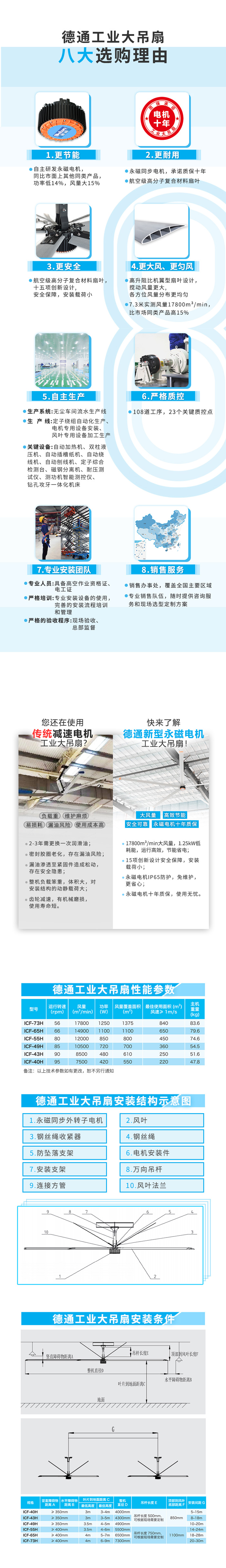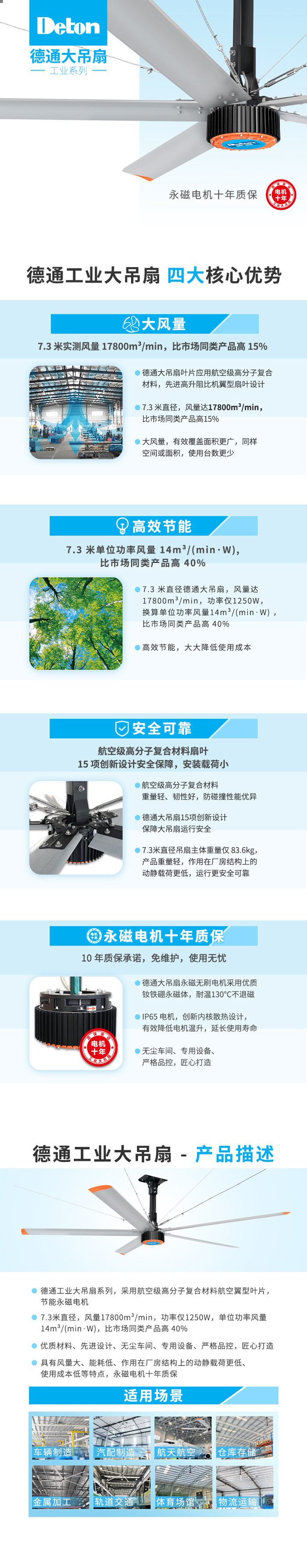 【高效節能】:7.3米單位功率風量14m3/(min·W),比市場同類產品高40%